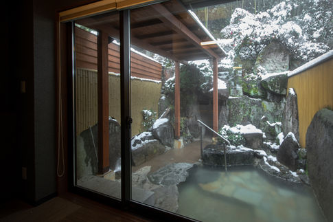 岩露天風呂付きのプライベートな空間で源泉かけ流しの湯をご堪能ください。