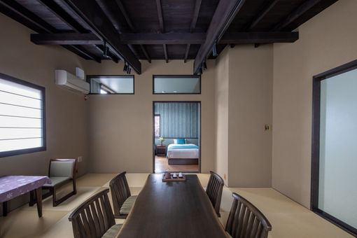 重厚感ある黒梅色のゆったりとした別邸の離れ。和の設えと至福のひとときをお過ごし頂けます。